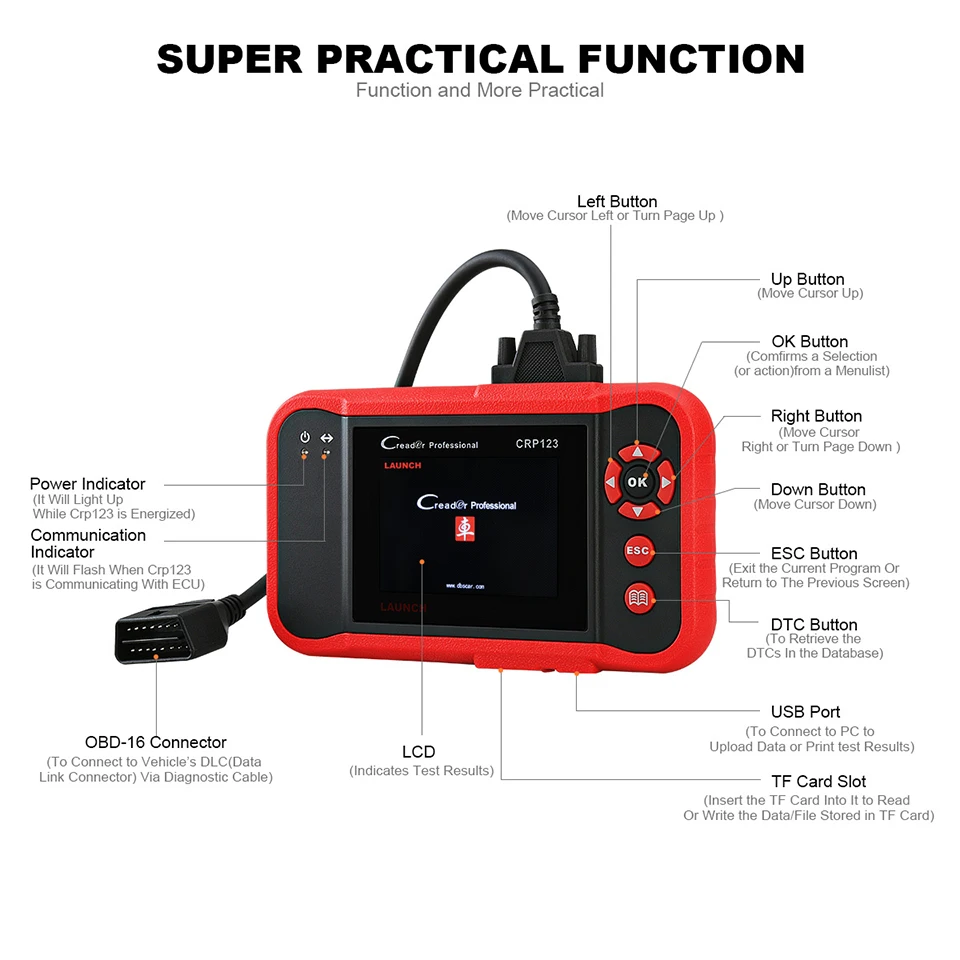 Cool Limited LAUNCH Creader CRP123 Car Diagnostic Tool OBD2 Scanner ABS, SRS, Transmission and Engine Code Scanner Support for Multi Brand tester tools Rating: 4.6 out of 5