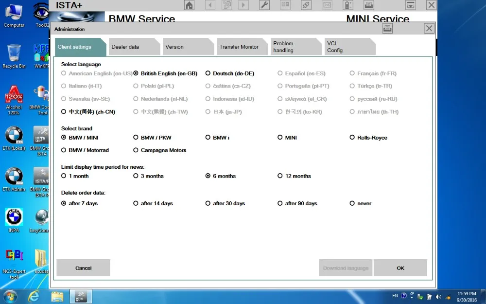 4.System: Windows 7 64bit system 5.with single module coding function. 6.Eeay to install...only thing you need to do is insert it into laptop!!! 7.No need dongle 8.If you need to do programming job, please make sure your laptop has 4GB ram at least. 9.Expert Mode with NCS, E-SYS and so on 10.Languages:ISTA D English German Chinese language ISTA P: English, German, Spanish, French, Italian, Polish, Portuguese, Turkish, Swedish, Dutch, Indian, Greek, Russian, Chinese, Japanese, Korean and Thai The highlights of a new machine